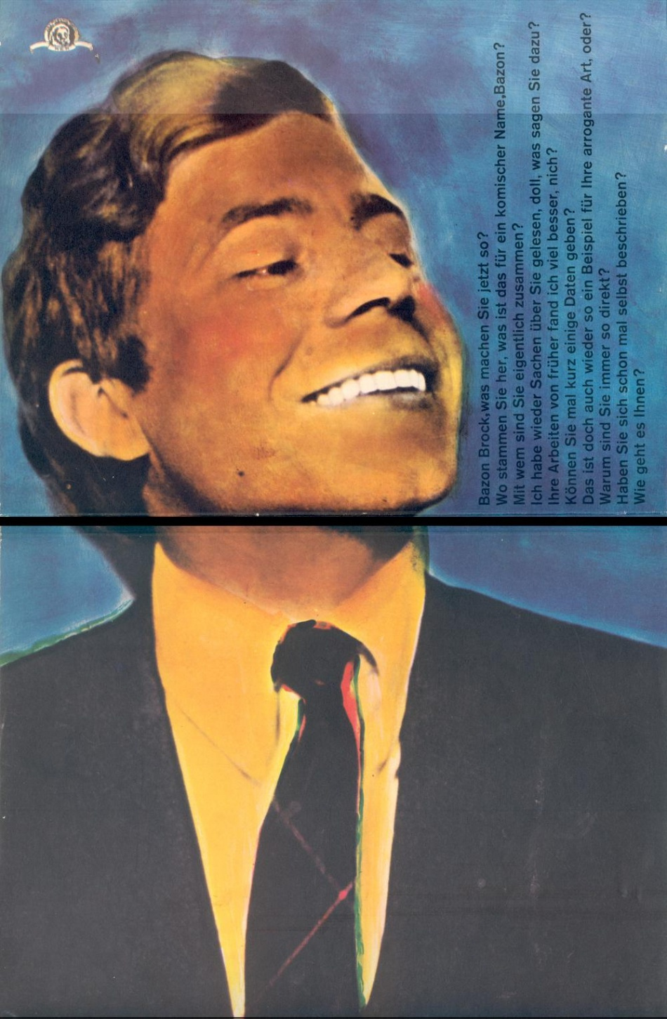 Am Beispiel seines Buches "Bazon Brock, was machen Sie jetzt so? (Die blaue Illustrierte)" präsentiert er das erste "Facebook" - veröffentlicht 1968!