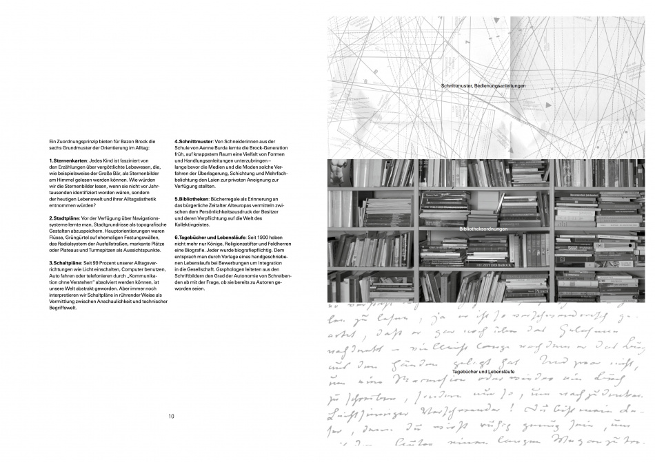 Ein Zuordnungsprinzip bieten für Bazon Brock die sechs Grundmuster der Orientierung im Alltag: